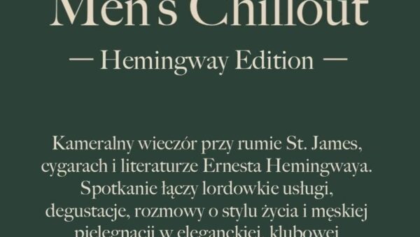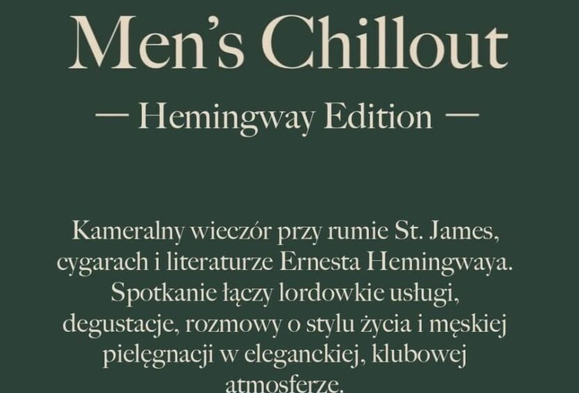 25 marca (środa), start godz. 18:30Warszawska Izba Lordów, Elektrownia Powiśle Przed nami wyjątkowa odsłona Men’s Chillout – Hemingway Edition, inspirowana stylem życia i literackim światem Ernest Hemingway.Wieczór poświęcony będzie klasycznym męskim przyjemnościom w klubowej atmosferze. Spotkanie połączy degustację rumu, cygar premium, fragmenty literatury oraz rozmowy o męskiej pielęgnacji. Inspiracją dla tej edycji jest książka A Moveable Feast, w której Hemingway opisuje paryskie kawiarnie i moment, gdy w chłodny dzień zamawia rum St. James, który – jak pisał – rozgrzewa ciało
